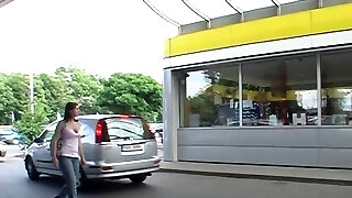 heißes arschbaby nikki lavay spritzt auf die knie, um einen fremden zu lutschen
