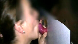 hure frau inhaliert & amp; stockt ebony beau an einem gloryhole