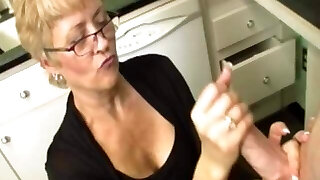 Mature stepmom strokes stepson till bukkake