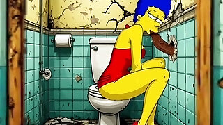 The Simpsons Porn Parody: Killer Cheating Wife Marge Lets a Black Dude Fuck Her In The Public Toilet