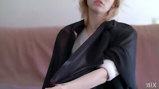 Amateur ash-blonde Lily Joy spreads legs to be fucked in the hotel room
