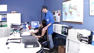 Brunette Boss Discovers Her Employee´s Huge Spear