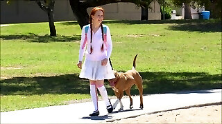 Red-haired cutie goes outdoors only to play around with her private parts