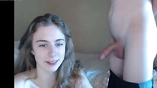 Beautiful girl blows for the first time on webcam