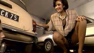 Ultra-kinky model in sexy pantyhose into car sex outdoors