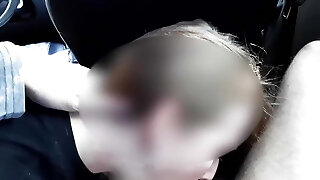 Sexy blonde girl inhaling my man meat in a car while we are in a traffic
