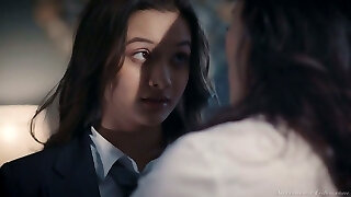 Hot like fire glorious office lesbian Alex De La Flor lures charming babe for sex