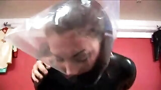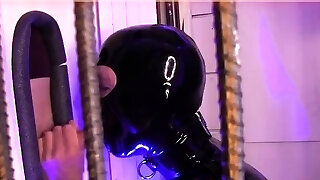 Total In Black Rubber Catsuit And Mask Latex Sex High Heel And Pissing Face