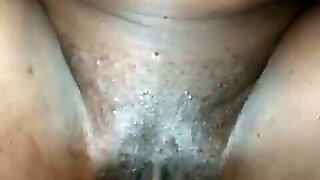 Solo ebony chick moans loud while pleasuring her jiggly cunt