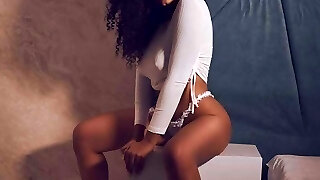 Horny dark-hued slut with an amazing oiled bubble butt gets the ultimate pleasure being penetrated by a sex machine