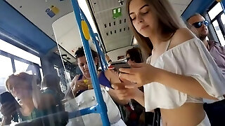Barely barely legal teen with a hangover walks around the city in ripped dress